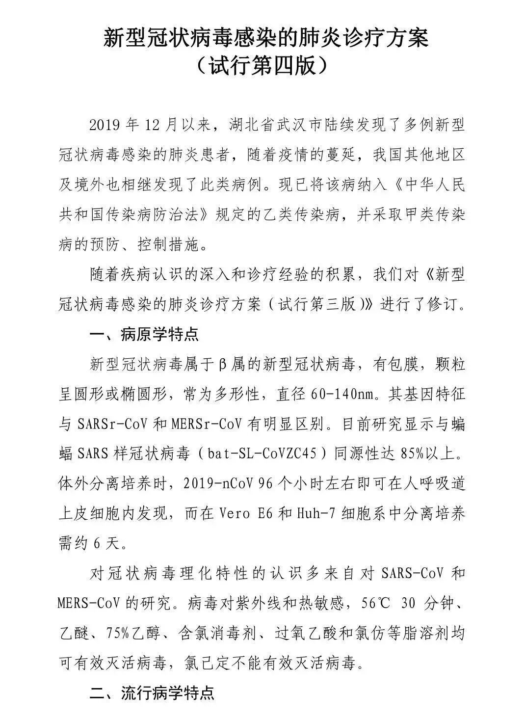 为进一步做好新型冠状病毒感染的肺炎病例诊断和医疗救治工作,我们组织专家对诊疗方案进行修订,形成了《新型冠状病毒感染的肺炎诊疗方案(试行第四版)》。现印发给你们,请参照执行。