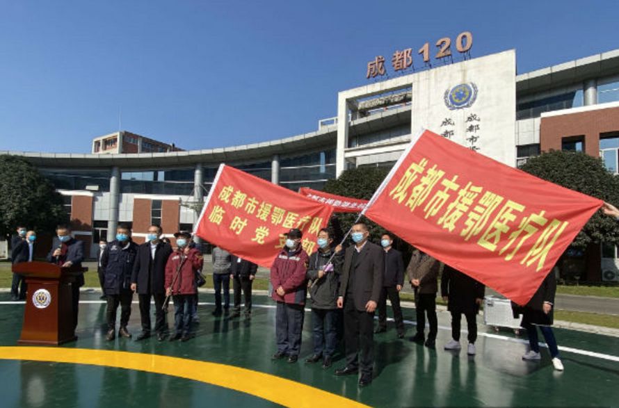 今日下午1点,成都市援助湖北抗击新冠肺炎医疗队出征仪式在成都市急救指挥中心举行,他们将随同四川省第六批援助湖北抗击新冠肺炎医疗队前往武汉,投入最前线的战“疫”。成都市中西医结合医院(成都市第一人民医院)党委专职副书记郭强是此次医疗队队长,医疗队抵达湖北后,将按照当地的安排开展工作。