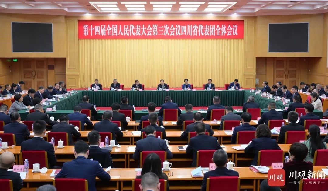 3月3日下午,在北京出席十四届全国人大三次会议的四川代表团在驻地举行全体会议。省委书记、省人大常委会主任王晓晖主持会议并讲话。