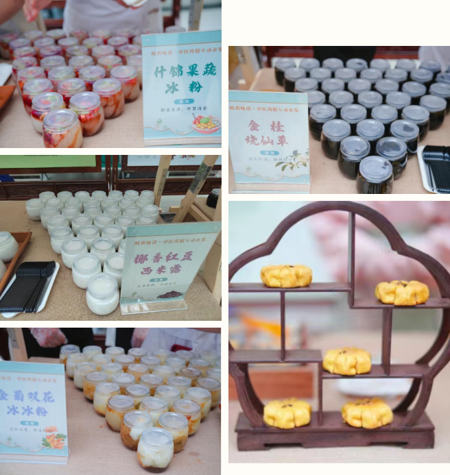 药膳体验区香气四溢,金菊双花冰冰粉(清热消暑,解毒利咽)、什锦果蔬冰粉(解暑生津,开胃消食)、金桂烧仙草(清热利湿,醒脾和中)、椰香红豆西米露(生津健脾,利湿和中)等多款精心研制的养生药膳,让参与者在品尝美味的同时,学习健康养生知识。现场还设置了养生茶饮、药膳点心品尝区,西南医科大学附属中医医院医护人员现场讲解其功效与制作方法。此外,现场集赞领线香等互动环节亦获得参与者广泛好评。