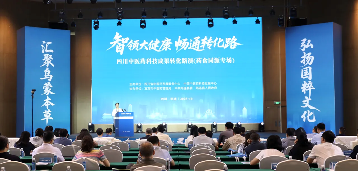 2025年10月17日,中医药科技成果转化路演(药食同源专场)在宜宾筠连举办。本次活动由四川省中医药发展服务中心和中国中医药科技发展中心联合主办,以“展示药食同源创新成果、促进成果转化与资源对接”为核心,搭建起中医药科技成果与市场需求对接的专业平台,同时与“泛乌蒙山中医药传承创新发展联盟中医药文化宣传暨交流会议”同期举办、形成联动,为中医药传承创新与成果转化营造良好氛围。