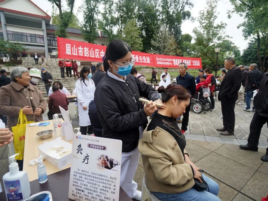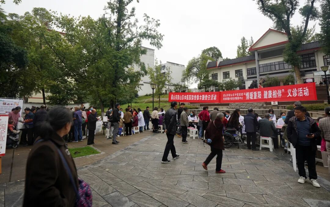 眉山市彭山区中医医院在凤鸣公园开展“情暖重阳 健康相伴”义诊活动。活动现场设置了两大服务区域,满足群众不同需求。在义诊区,专家团队摆开“健康长龙”,把脉问诊、听心肺、测血压、解读报告,为群众提供“一对一”健康服务。