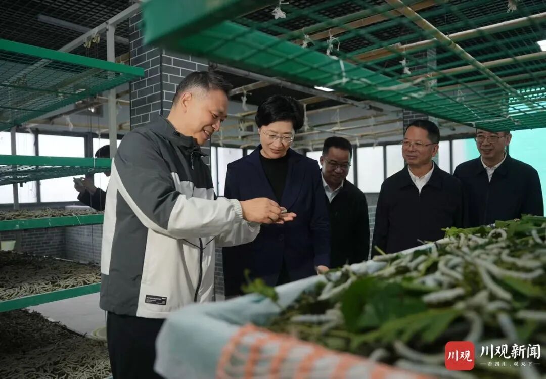 10月30日,省委副书记、省长施小琳在武胜蚕桑专家大院,调研机制创新推动乡村蚕桑产业振兴、发展特色产业带动群众增收情况。