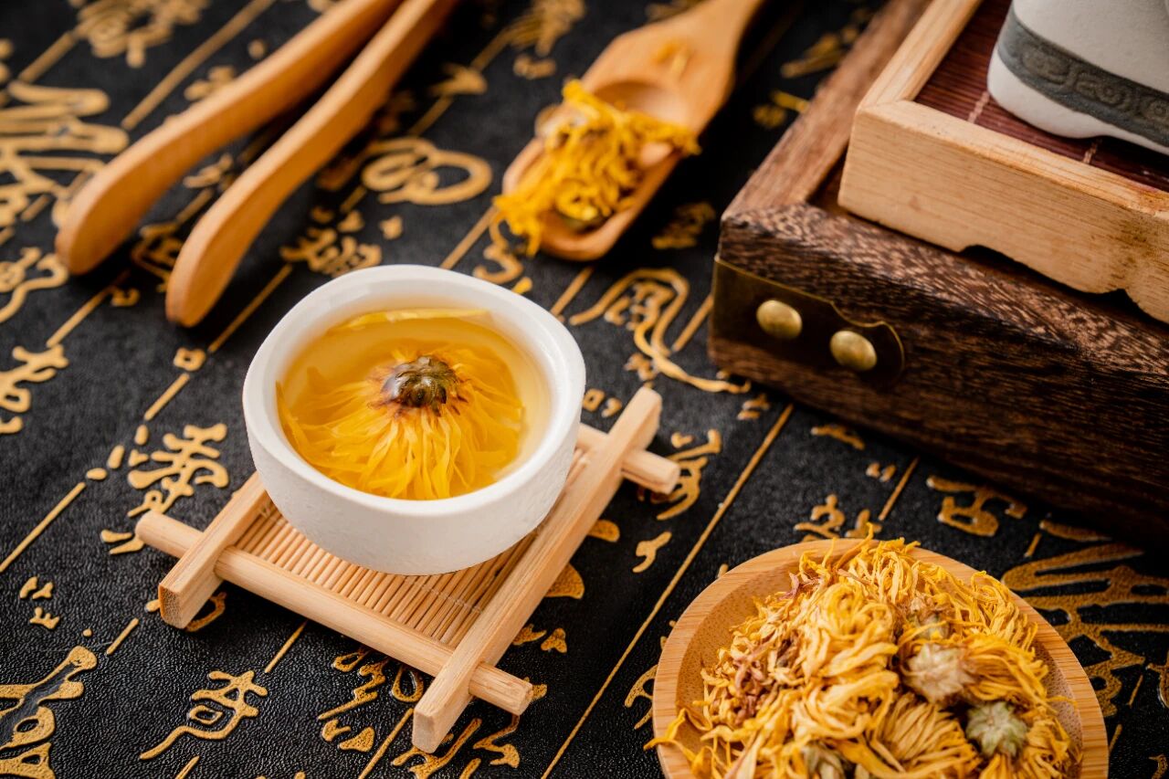 菊花能平抑肝阳、清肝明目,平时肝火旺、头晕头痛的时候,泡点菊花茶就很舒服。现代研究也发现,菊花里的成分能扩张血管、降脂、抑制血小板聚集,还能辅助降压,特别适合肝阳上亢的人。