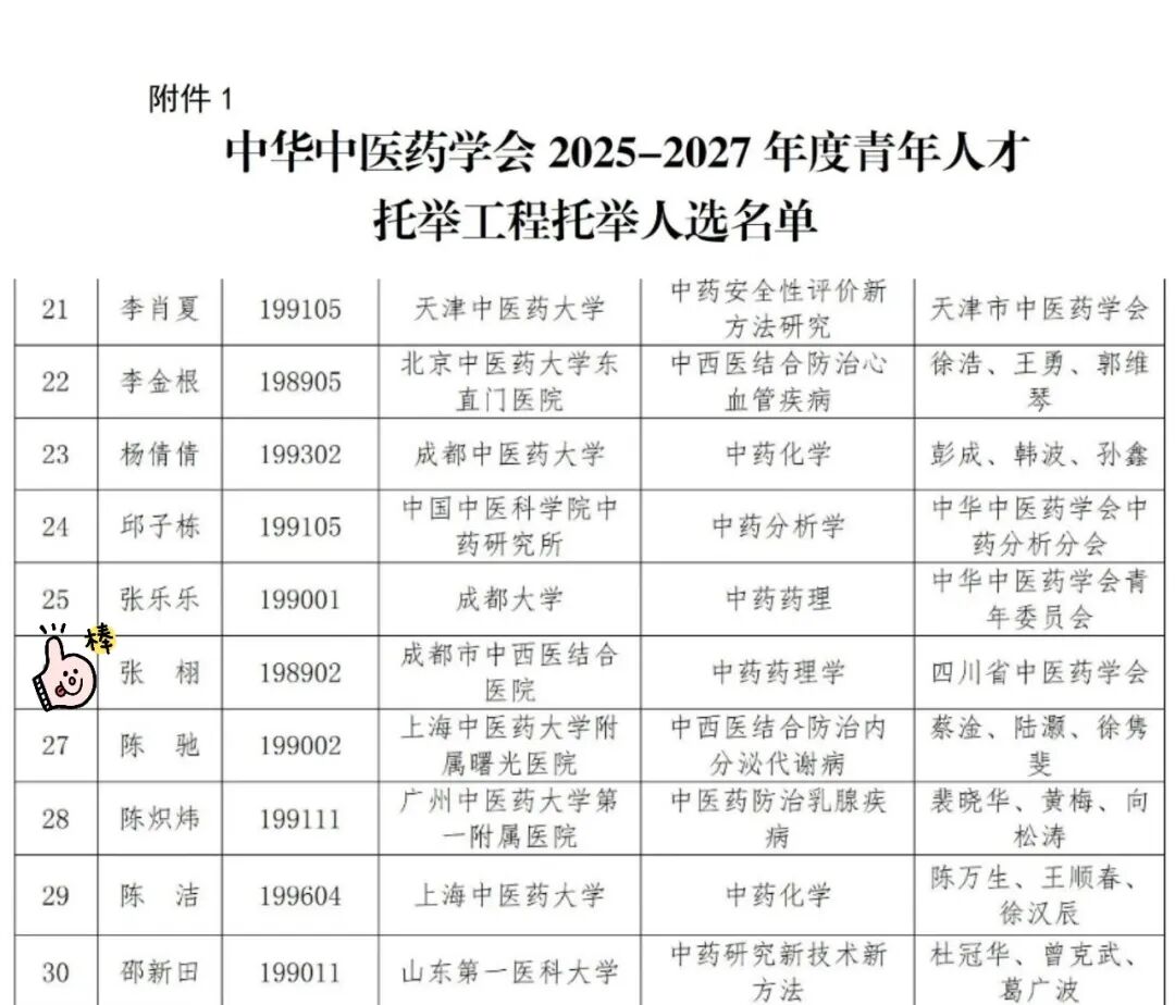 西药剂科张栩博士成功入选中华中医药学会2025-2027年度青年人才托举工程托举人选,作为省内唯一一家有人员入选该项目的市级医疗机构,医院再次打破层级壁垒,彰显了在高层次青年人才培养上的突破性进展。该工程是中医药领域极具含金量的人才培育项目,全国仅60人获此殊荣,四川省仅6席入选。