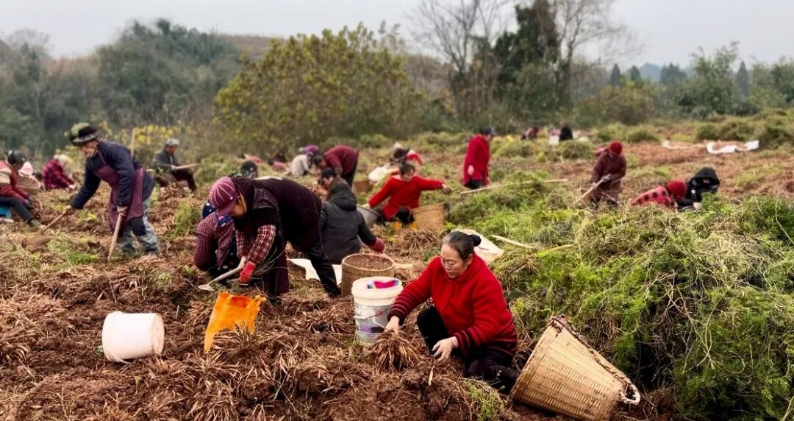 内江东兴“中药材产业发展助力乡村振兴,道地药材天冬铺就群众致富路”。全区种植天冬5万余亩,建成产地初加工基地9个,研发天冬系列产品40款。以撂荒地整治为抓手,采取“企业+基地+种植户”方式,积极探索利益分成模式,建立中药材联农带农发展机制,天冬种植户均年增收超2万元,积极推广“天冬+玉米、大豆”等粮药套种模式,实现一地双收,吸纳本地群众6000余人就近务工,外出务工群体回流比例达40%。