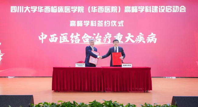 四川大学华西医院“融汇古今智慧、创新诊疗范式,高水平建设国家中西医协同‘旗舰’医院”。将“中西医结合治疗重大疾病”纳入医院5大高峰学科建设计划,每年安排5000万元支持开展协作攻关。中药新药六合丹软膏转化9150万元。全院推行中医医师分片驻点,打造中医优势突出、特色明显的“胰腺炎中心”,建立慢阻肺等多种疾病中西医结合诊治模式。