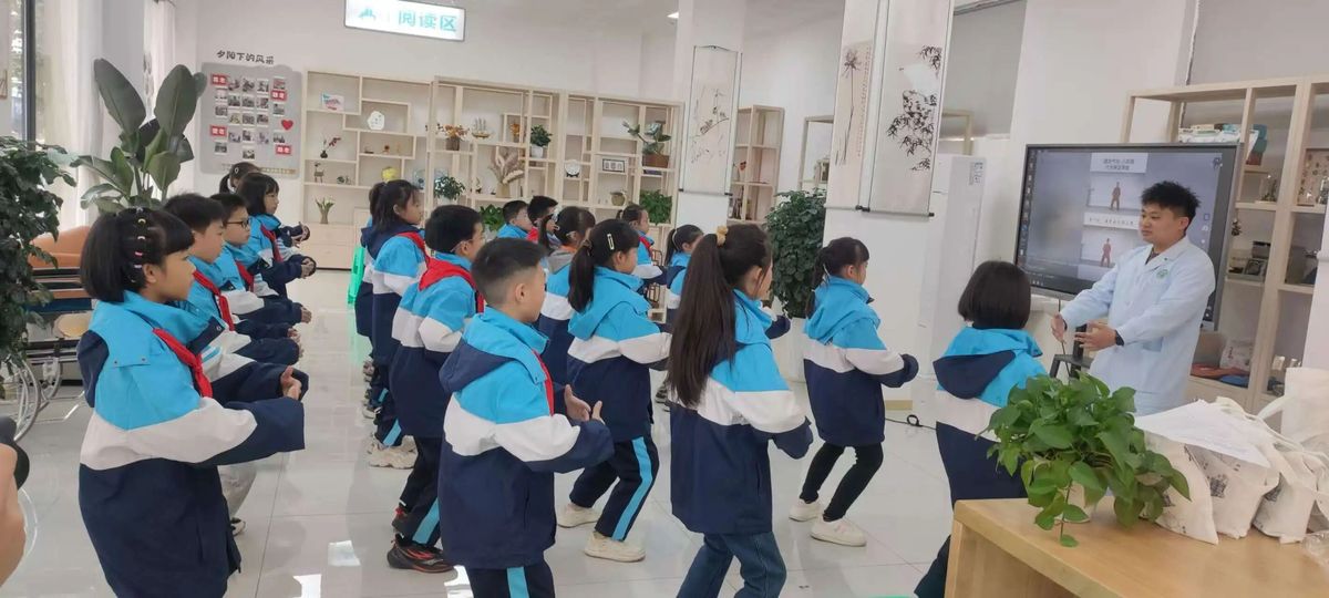 师生参与中医药文化沉浸式体验活动,学习“八段锦”等养生功法,实现从课堂知识到现实场景的延伸。