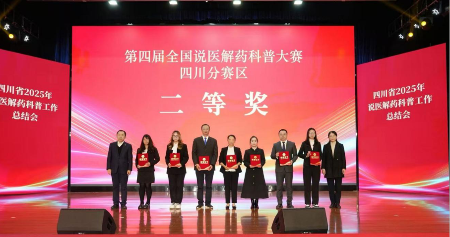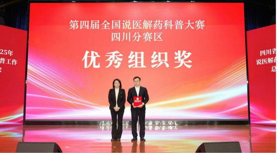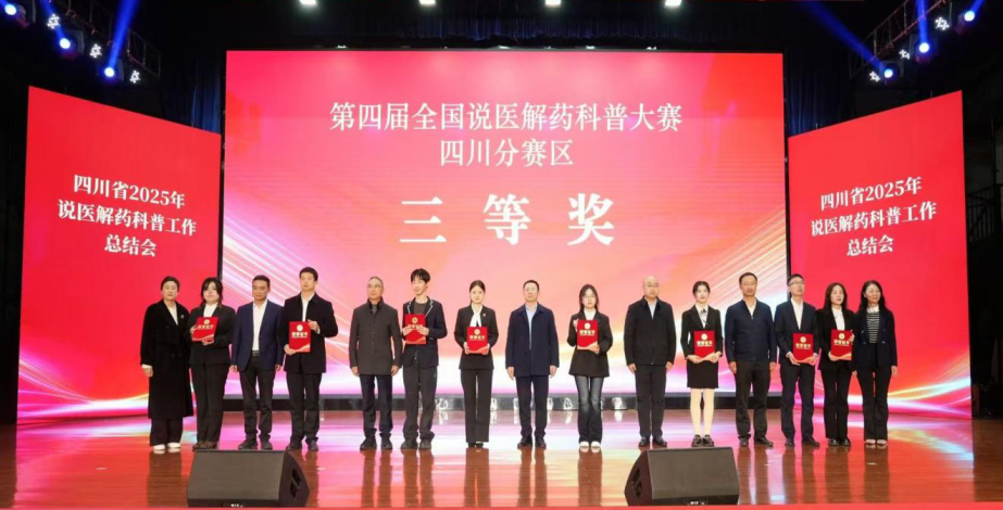 会议期间,举行第四届全国说医解药科普大赛四川分赛区颁奖仪式,颁发一等奖4名、二等奖8名、三等奖16名、优秀组织奖1名。