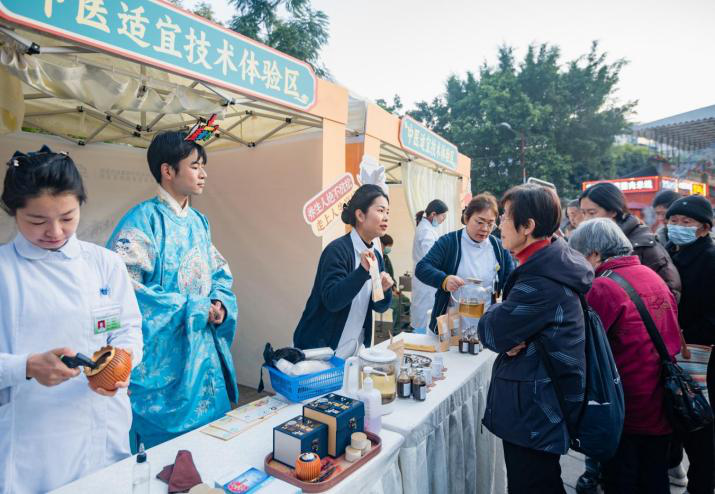此次活动以“杏林膏香沁花城,中医传承守健康”为主题,设置名中医义诊、中医适宜技术体验、中医药展览等8个分区,集中展示中药材、中药制剂及中医药大健康产品等中医药产业链新模式、新业态。同时,有机融入中医药文化展示、膏方制作体验、智能化体质辨识、中药药膳茶饮品尝、city养生局等10余种丰富多彩的沉浸式、互动性体验项目,开幕式当天吸引2000余名群众参与体验。