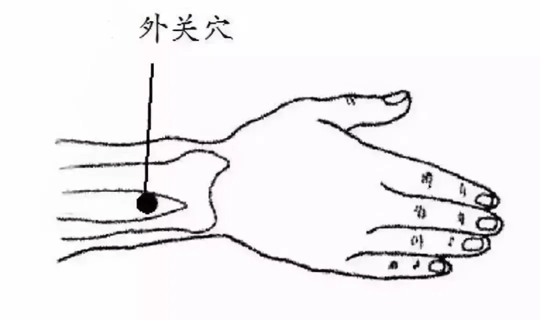 还有一个简单的取穴方法:将手掌向上伸直,在手腕内侧横纹的中央,向上约三指宽的中央凹陷处,就是内关穴。